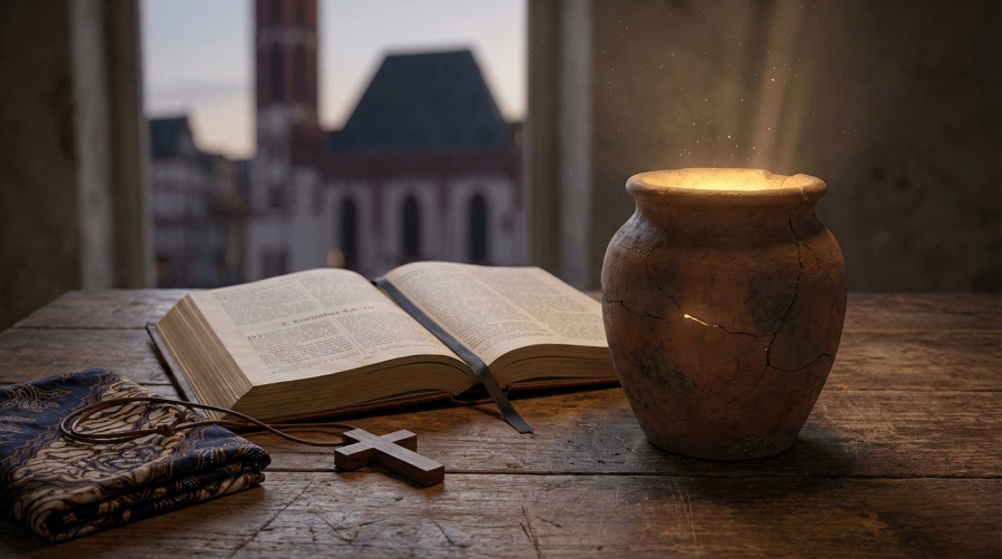 Denn Gott, der da sprach: Licht soll aus der Finsternis hervorleuchten, der hat einen hellen Schein in unsre Herzen gegeben, dass die Erleuchtung entstünde zur Erkenntnis der Herrlichkeit Gottes in dem Angesicht Jesu Christi. 7 Wir haben aber diesen Schatz in irdenen Gefäßen, auf dass die überschwängliche Kraft von Gott sei und nicht von uns. 8 Wir sind von allen Seiten bedrängt, aber wir ängstigen uns nicht. Uns ist bange, aber wir verzagen nicht. 9 Wir leiden Verfolgung, aber wir werden nicht verlassen. Wir werden unterdrückt, aber wir kommen nicht um. 10 Wir tragen allezeit das Sterben Jesu an unserm Leibe, auf dass auch das Leben Jesu an unserm Leibe offenbar werde.