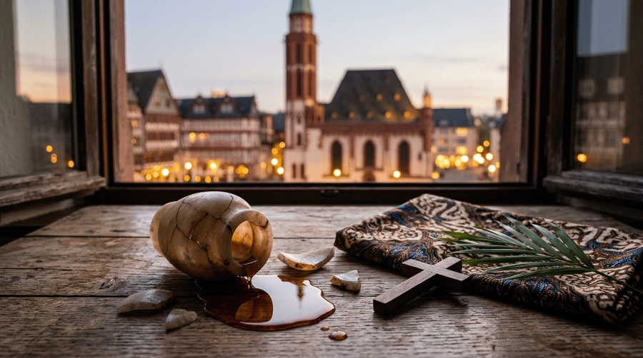 Jesus war in Betanien zu Gast; da kam eine Frau mit einem Alabastergefäß voll sehr teurem Duftöl. 4 Einige wurden ärgerlich und sagten: „Warum diese Verschwendung?“ 5 „Man hätte es teuer verkaufen und den Armen geben können.“ Und sie fuhren die Frau an. 6 Jesus aber sagte: „Lasst sie in Ruhe. Sie hat etwas Gutes getan.“ 7 „Arme habt ihr immer bei euch; ihnen könnt ihr jederzeit helfen. Mich aber habt ihr nicht immer.“ 8 „Sie hat getan, was sie konnte: Sie hat meinen Leib im Voraus für das Begräbnis gesalbt.“ 9 „Wahrlich: Wo immer das Evangelium gepredigt wird, wird man auch von ihr erzählen – zur Erinnerung an sie.“