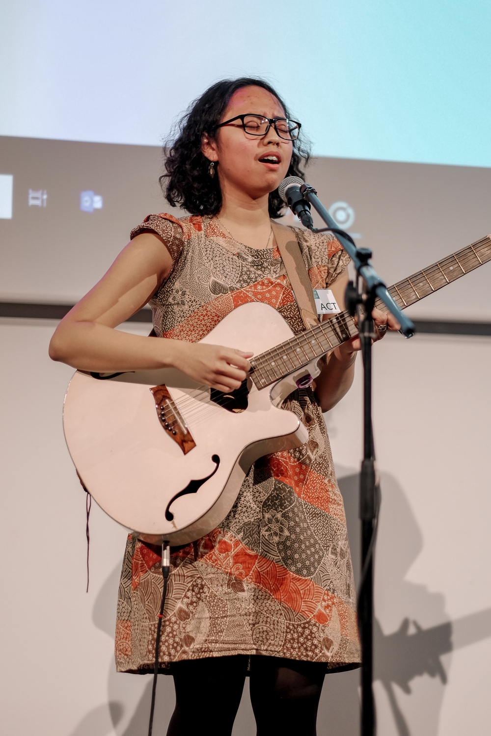 Dia memainkan karya dari "Bach-Brahms Chaconne di D minor". Keunikan komposisi ini yaitu dimainkan hanya dengan tangan kiri.